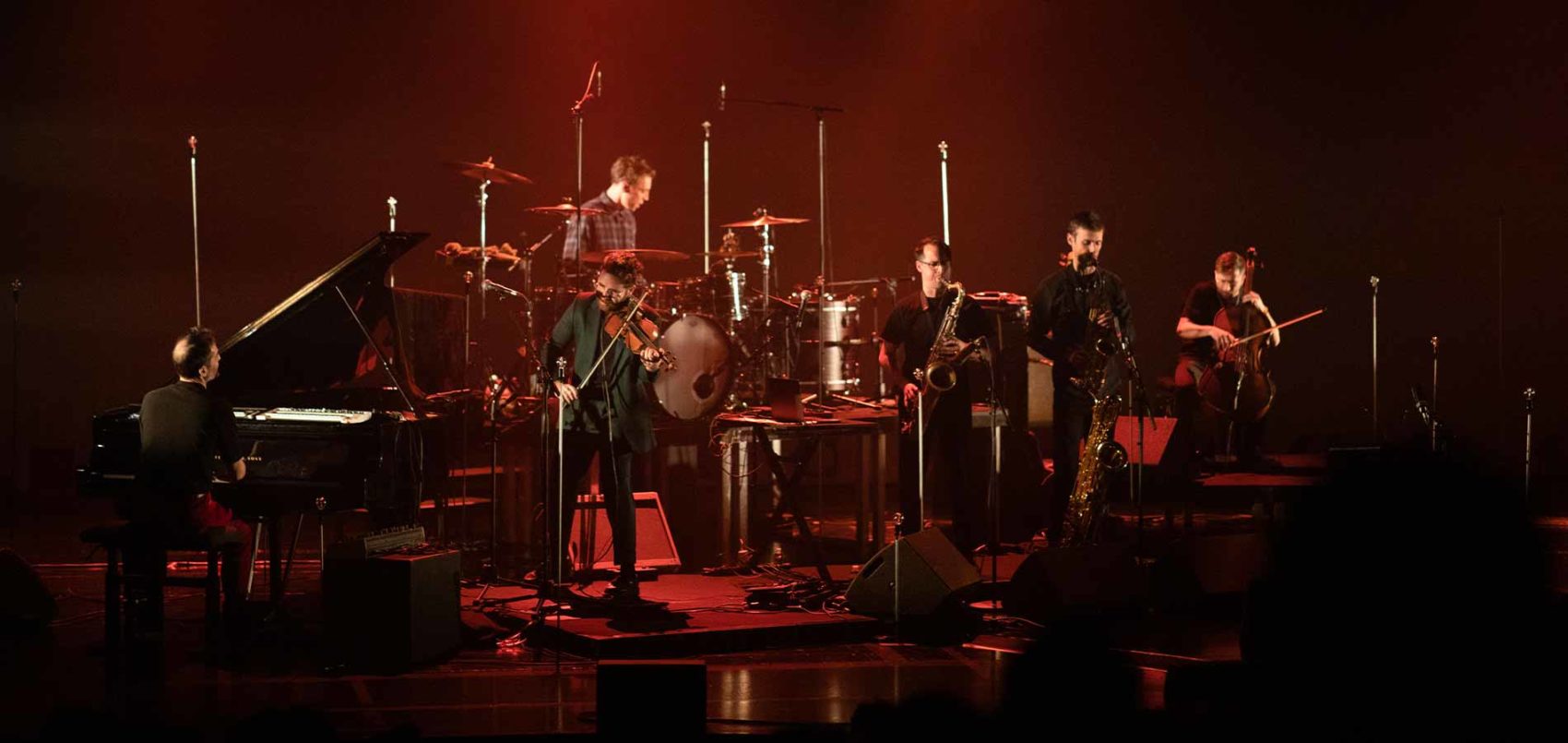 Salué par un accueil enthousiaste en 2020, l’album Constantine poursuit aujourd’hui son beau chemin sur scène, avec Le Grand Orchestre du Tricot. Ferveur du collectif et joie des mélanges irriguent un projet qui est avant tout une belle histoire de famille. De sang d’abord, puisque les frères Ceccaldi y rendent hommage à l’œuvre de leur père. De cœur ensuite, avec un travail de réorchestration profondément collectif, réalisé avec les membres du Tricollectif et de fidèles compagnes et compagnons de route (on croise sur l’album Leïla Martial, Thomas de Pourquery, Michel Portal ou Airelle Besson). Voix et héritages s’embrassent au fil d’un répertoire qui évoque l’exil, la transmission, le partage et les souvenirs impalpables. Tour à tour facétieux, écorché ou tonitruant, l’orchestre se joue des codes et des frontières en inventant la bande originale d’une épopée exaltée, des rues d’un Paris bouillonnant aux hauteurs arides des reliefs de Constantine.