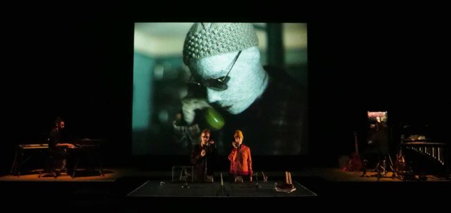 En 2057, dans un monde fragilisé par des décennies d’un effondrement progressif, la réception d’un signal musical éveille les espoirs de rencontre interstellaire. Une spationaute, Sandra, se risque dans un voyage solitaire à la recherche de la source de cette émission extra-terrestre. Parallèlement, ses deux sœurs sont engagées dans des voies contraires : l’une assiste un chef d’entreprise multimilliardaire dans son projet d’exode, où 500 personnes tirées au sort seront de la première navette spatiale à destination de l’exoplanète Nephtys. L’autre est la figure de proue d’une organisation activiste pro-Terre, qui rejette violemment ce projet et entend fonder un nouveau modèle de société égalitaire. Fable chorale pour cinq interprètes, où les récits comme les espaces se juxtaposent, SpaceSongs déploie les codes des grands récits d’anticipation pour tenir le public en haleine et poser la question de nos mondes en mutations. La musique y tient une place centrale, langage universel et voie possible pour une réconciliation.